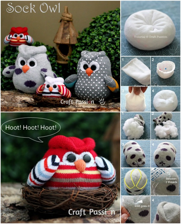Incredibly Lovely Project: How To DIY Sock Owls –http://www.craftpassion.com/2014/02/how-to-sew-sock-owl.html/2