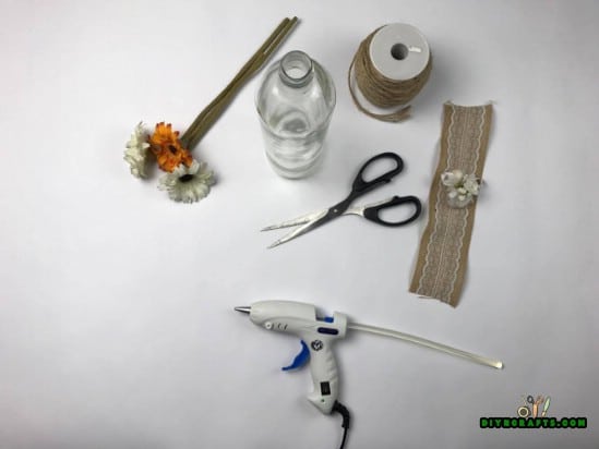 Once you are done decorating your bottle, put some flowers in it, and it becomes a beautiful rustic vase!